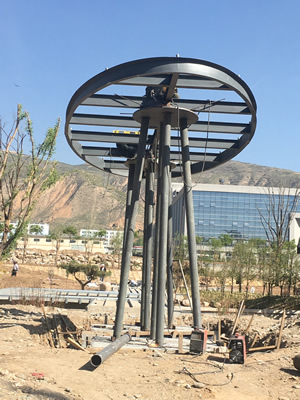 滄盛鋼結構廠擁有數(shù)控火焰切割機,數(shù)控鉆床,H型鋼生產(chǎn)線,16噸龍門吊車,大型壓力機,折彎機,剪板機,自動網(wǎng)架焊接機、通過式拋丸機,承接各種鋼結構造型施工。
